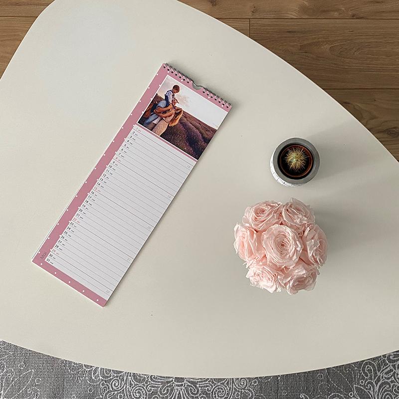- Le calendrier mémo : Avec son format original de 15x42cm et ses 3 thèmes colorés, ce calendrier personnalisé apportera une touche unique à vos murs.